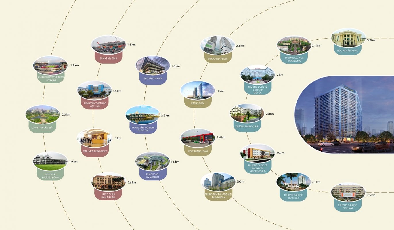 Iris Garden nằm trên hai tuyến đường huyết mạch Phạm Hùng – Mễ Trì, giúp cư dân dự án dễ dàng di chuyển đến các khu vực lân cận và trung tâm thành phố.